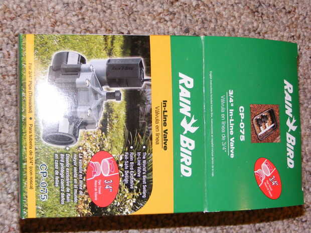 1) una válvula de solenoide eléctrica - 3/4" en la línea válvula Rain Bird CP-075 o similar. También se llama válvula automática de rociadores.