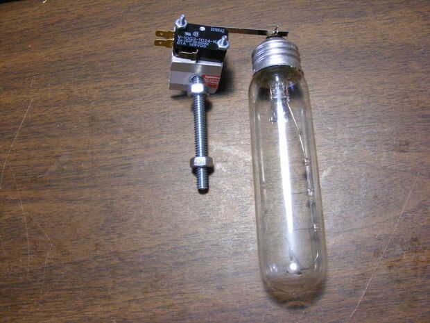 Un tornillo de 1/4-20 largo 3 "o 4" junto con algunas nueces crea una "altura ajustable" montaje de poste para el interruptor de límite. Compruebe que el interruptor flotador y moverse libremente sin atascarse.