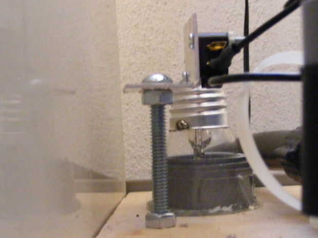 4. para el flotador usé una bombilla T10 de 25 vatios. El lado negativo de es que puede romperse la bombilla. El lado positivo era - del tamaño correcto, totalmente apretada, inerte, resistente al desgaste, toboganes con muy baja fricción dentro de la guía y puede conectarse fácilmente a la carrera a través de un bucle de alambre de soldar en. Lo ideal sería habría utilizado una barra de plástico pero no pude encontrar fácilmente.