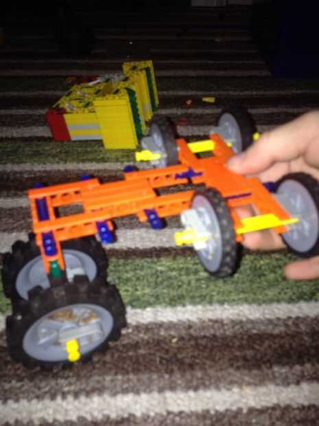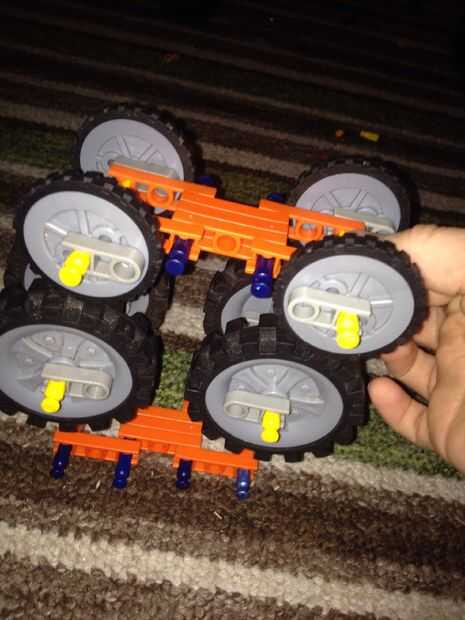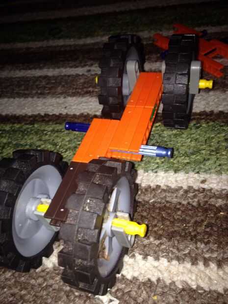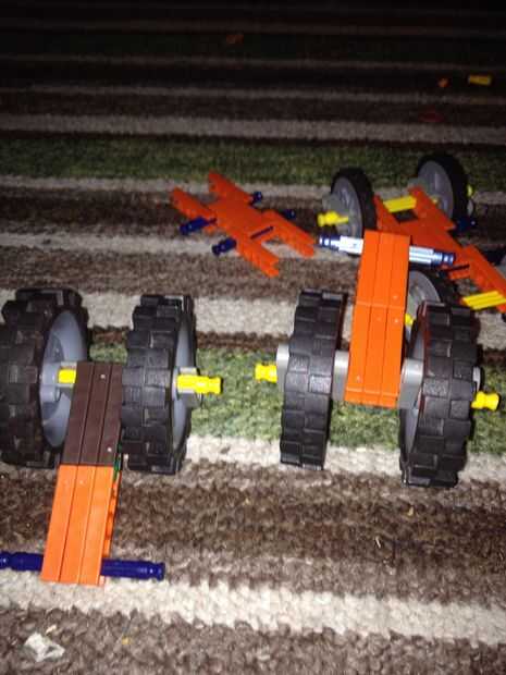Paso 1: piezas Varilla azul = 2 conector naranja = 7 ruedas pequeñas (y ruedas) = 4 conectores gris = 8 barra amarilla = 2Paso 2: Vamos a empezar Solo mirar fotos también no importa de qué manera ponen en él puede conducir todavíaPaso 3: Todo hecho E
