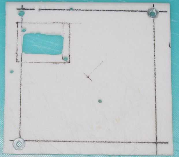 Marqué el mismo 4.25" cuadrado, centrado en la placa superior.