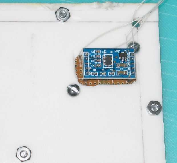 Luego tuve que hacer un recorte para el acelerómetro tablero de montaje. Con el CD de montar adjunto, colocado la Junta cerca del punto de pivote. Tengo el acelerometro orientado, East-West es 'X' y de norte a sur es 'Y'. 'Z' no se usa pero sería arriba-abajo.