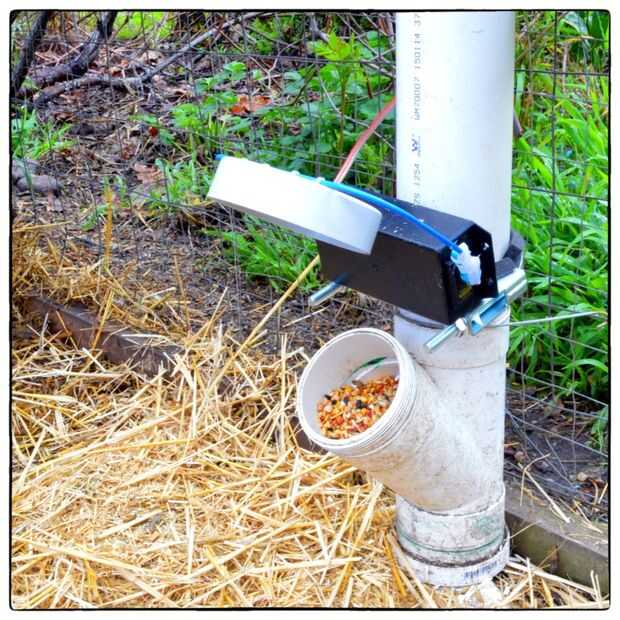 Cualquier persona que tenga pollos probablemente ha experimentado de ratas o ratones en algún momento. Les encanta meterse en la comida de pollos en la noche y hacer un lío. La mayoría de las ratas han capturado en las trampas y hayan sido, pero sé que no pasará mucho tiempo antes de volver. Me enfermé de ver su comida esparcido por las mañanas así que decidí hacer un alimentador que automáticamente se cierra por la noche.