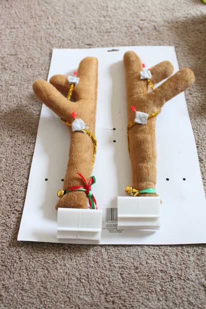 Una vez que se les han torcido, girar alrededor de los cuernos. Ser creativo. Los limpiapipas será el ancla para las luces. Siempre gire el limpiapipas uno al otro para que no queden sueltas en los cuernos.