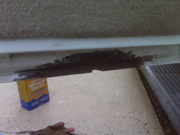 coche de mi marido había desarrollado un gran agujero de óxido en la defensa debajo de la tapa de la gas.Necesario fijar antes el invierno, y mi marido no tenía el tiempo libre a reparar y no quería pagar los 150-200 $ a un taller de carrocería.Así q