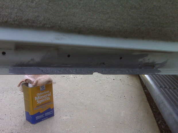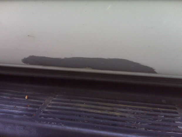 coche de mi marido había desarrollado un gran agujero de óxido en la defensa debajo de la tapa de la gas.Necesario fijar antes el invierno, y mi marido no tenía el tiempo libre a reparar y no quería pagar los 150-200 $ a un taller de carrocería.Así q