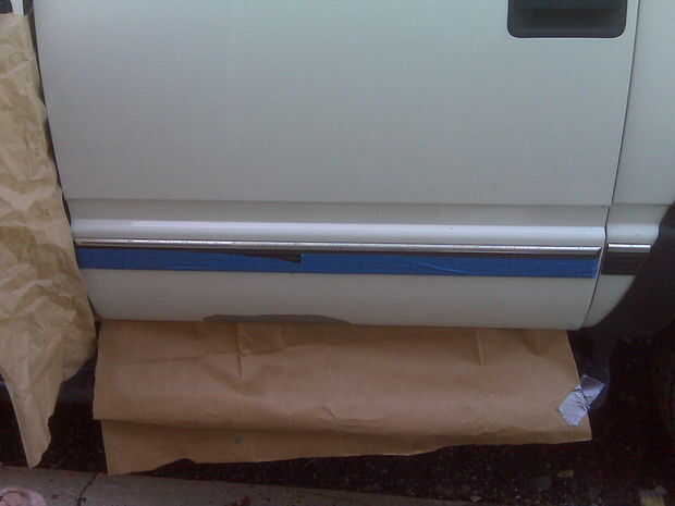coche de mi marido había desarrollado un gran agujero de óxido en la defensa debajo de la tapa de la gas.Necesario fijar antes el invierno, y mi marido no tenía el tiempo libre a reparar y no quería pagar los 150-200 $ a un taller de carrocería.Así q