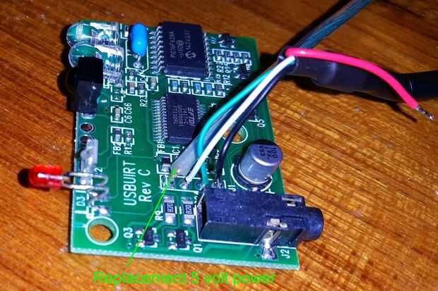 Tengo una fuente de Volt 5 de mi fuente de alimentación de atx de pc de escritorio que será la nueva potencia en el USB UIRT.