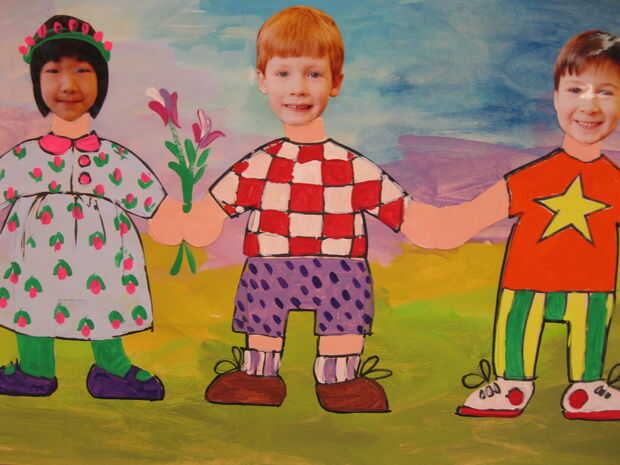 En primer grado hacemos pinta amistad muñecos de papel.