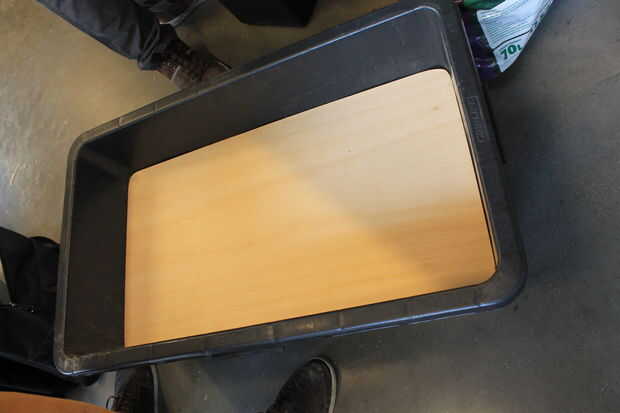 Luego realmente realizar el tablón por serrar una bonita plaza y fregado algunos bordes agradables en los lados para encajar la tabla en la papelera.