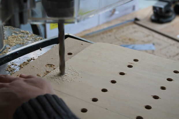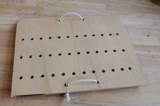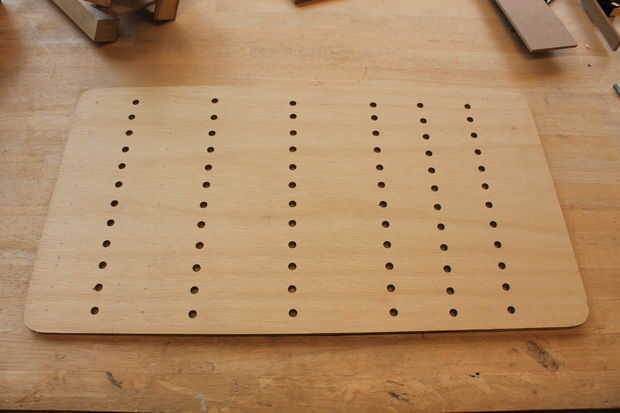 Para hacer los agujeros puede dibuja un patrón en el tablón y taladrar los agujeros.