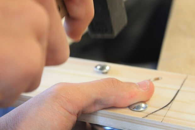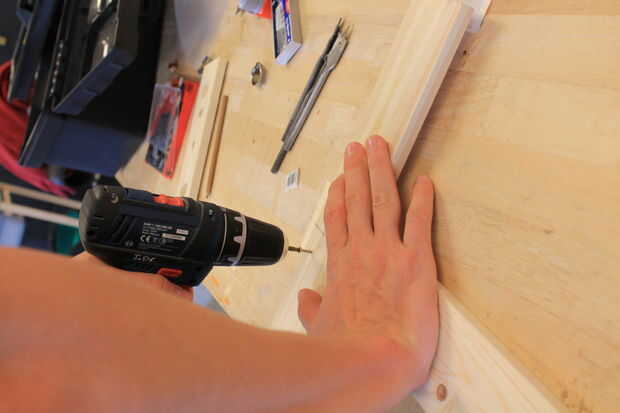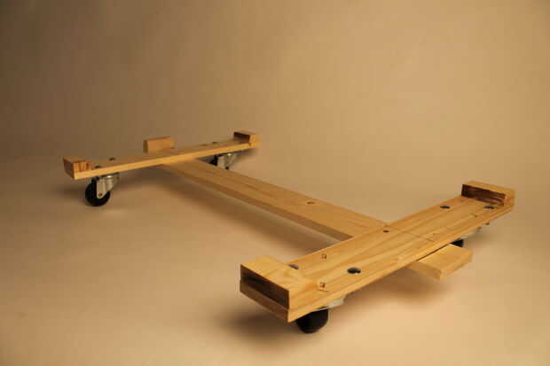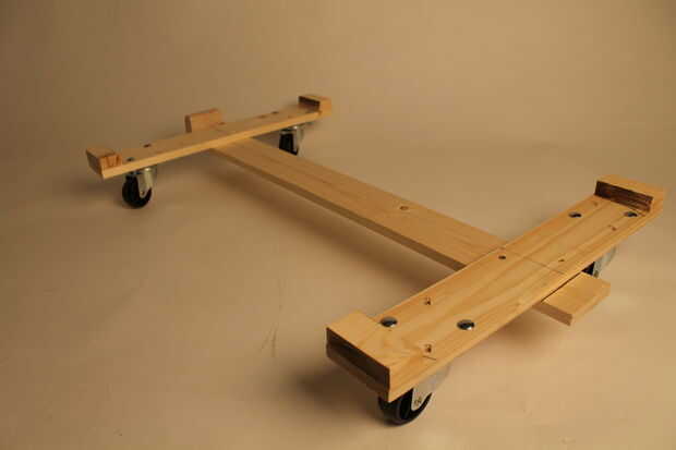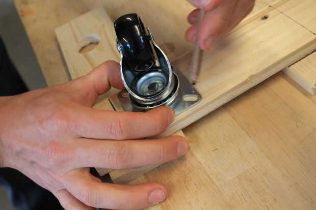 Añadir las ruedas y coloque algunos pedazos adicionales de la madera en el borde para que no se deslice el compartimiento de la carretilla rodante.