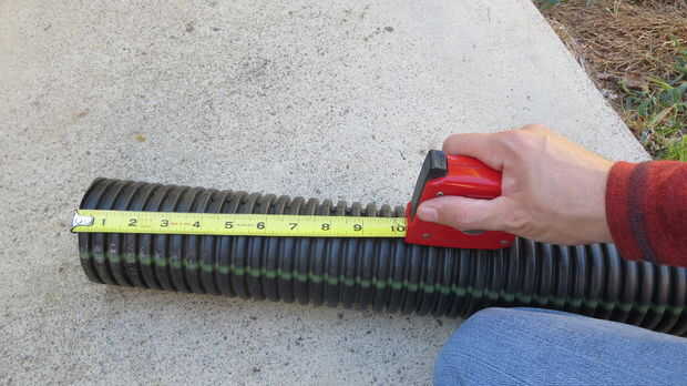 ¿Recuerde eso medida que tomamos cuando llenamos la caja con agua? Esto es donde que va a venir bien. Desea medir y cortar los tubos de drenaje 1 1/2-2 pulgadas más altos que la medición de agua que hicimos. En mi caso, les corté a unos 6 1/2 pulgadas.