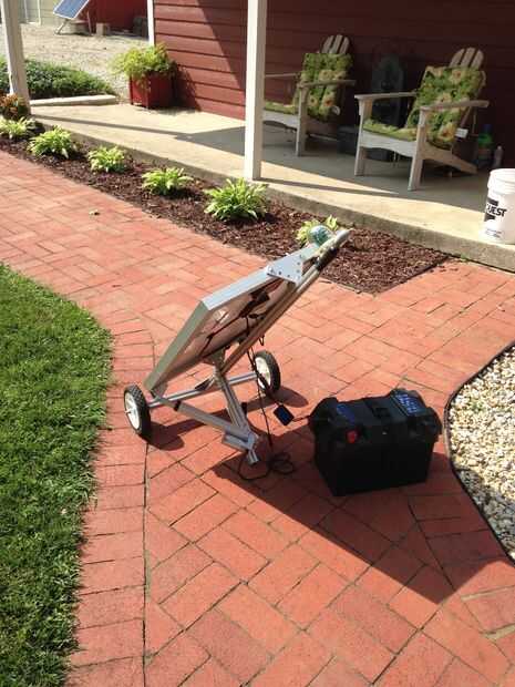 El sistema que he construido es un sistema de eje construido ranura en T de extrusión de aluminio, un robusto conjunto de ruedas, un actuador de 12 vdc y una inclinación manualmente ajustada. Se utilizó un panel solar de 50 Watts pero puede manejar hasta 100 vatios con modificaciones al diseño. Tiene un controlador de carga solar, un componente de seguimiento solar asequible y un actuador para girar el panel solar. Simplemente conecte una batería a los cables de conexión rápida y cargar la batería de almacenamiento. Si sólo necesita alimentación de CC y le toca usar sólo LED para proporcionar la luz a través de la noche que todo lo que te necesita. Sin embargo, gente más activa requiere corriente alterna para cafeteras de radios, televisores e incluso un refrigerador. En este caso tienes que comprar baterías adicionales para crear una matriz y conectarlos a un inversor de la energía de descenso. O, usted puede comprar cualquier número de paquetes de energía del portátiles en el mercado que se combinan en un conjunto compacto y ligero agradable. El Objetivo de cero es la batería ideal para este sistema.