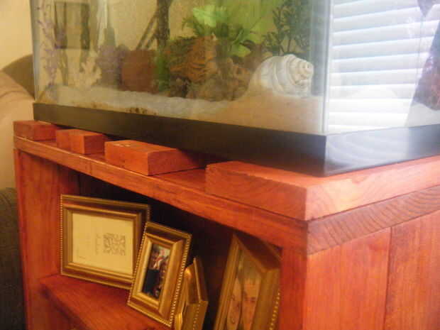 Una imagen: En la parte superior, a lo largo de los bordes laterales, agregado algunas tablas de una pulgada de espesor. Esto es lo que estará el tanque y el flujo de aire de la ventilación AC fluirá debajo del tanque y fuera del stand. El aire sale de la parte delantera y la espalda. Esto es importante para no bloquearon los respiraderos. Tu acuario se enfría, y su casa todavía conseguir refrescada así.
