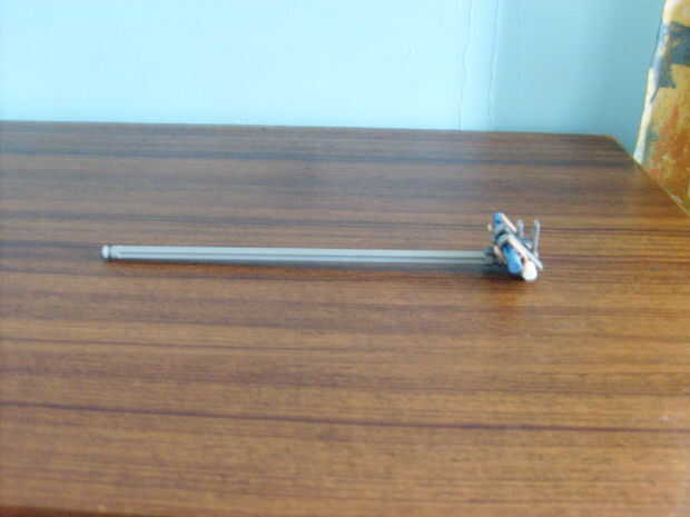 Hola chicos! Este es mi arma más reciente de la serie de LR. Esta pistola dispara flechas reales y es dos veces tan potente como la LKSS. Esto utiliza 5 pies largo 20lb tubería quirúrgica. En teoría esto tiene poder suficiente para derribar a un cier