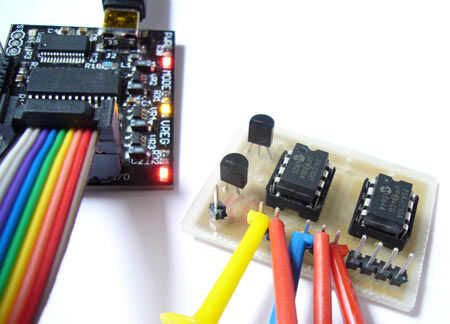 El 3EEPROM tiene tres chips EEPROM comunes: el DS2431 (1-Wire), 24AA - (I2C) y 25AA - (SPI). Los tres fueron previamente demostrada en hackear un día, pero cada demo utiliza una versión diferente del Bus Pirate hardware y firmware, su difícil para un principiante seguir utilizando un Bus Pirate v2go.