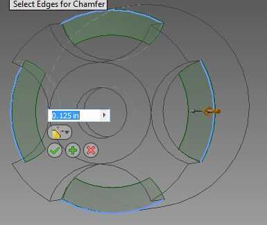 Goal:Divertirse haciendo estándar y cargado dados usando Autodesk Inventor y la impresora 3D Makerbot.Procedimiento:* Crear un cubo de 1".* Utiliza filete de todos los rincones.* Crear un cuarto arco circunferencial.  Esta gira por 360 para crear un