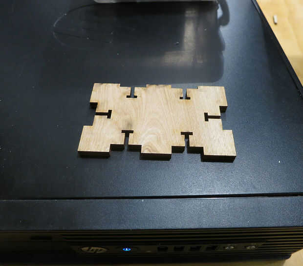Este es el final final de la caja. Debo han demostrado una pinza en esta imagen para demostrar que es dimensionalmente exacta y corte exactamente 1:1 escala como dibujado. Si no hubiera sido exactamente las dimensiones correctas que la caja no habría montado correctamente.