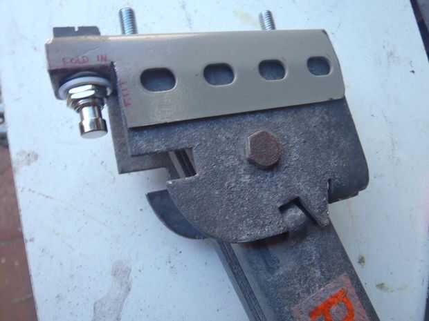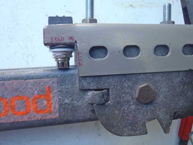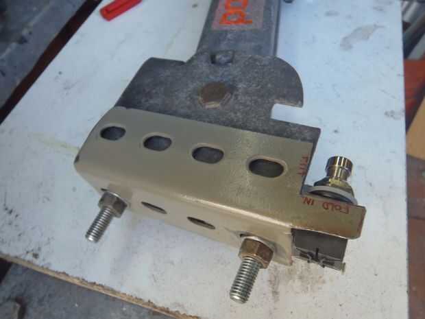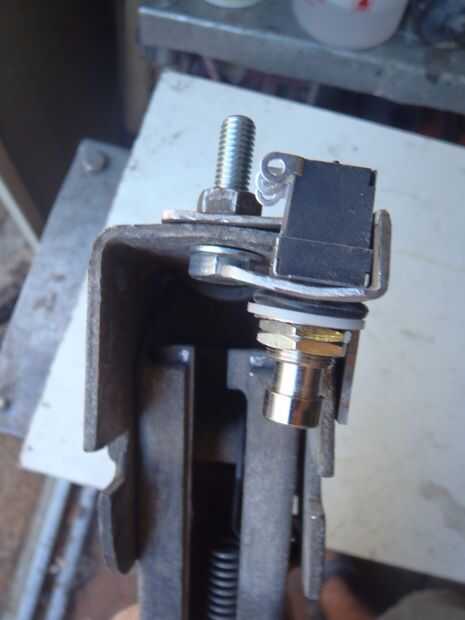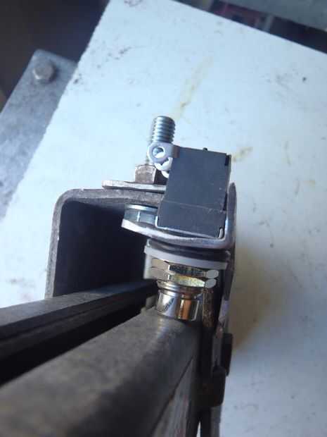 Espero que en estas fotos puedes ver como la aleta doblada ocupa el interruptor justo en posición para ser presionado por el gato cuando el ángulo de metal se fija con pernos en su lugar. También tuve que agrandar el agujero para el interruptor en. Presentar el trabajo otra vez.