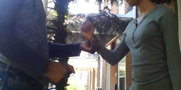 3. Tire de la muñeca de manos del atacante y luego agarra la muñeca del atacante.