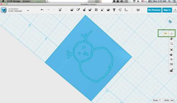 Antes de mover a la nueva etapa utilice la herramienta "Pan" y mostrar en la tercera captura de pantalla y mantenga el todo de su ratón para ir a la parte inferior de la cuadrícula. Usted necesitará hacer esto para tener acceso a hombre de la nieve del bosquejo que es en la parte inferior.
