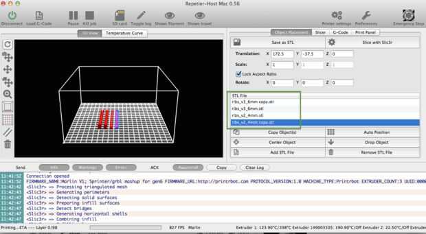 Hacer otra copia de cada uno de los archivos STL y cargar los archivos en el software de la impresora como se muestra en la pantalla arriba.