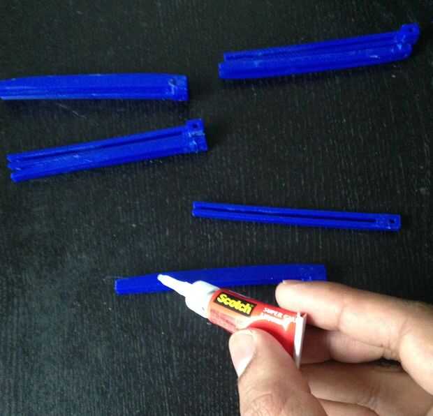 Una vez que tengas la impresión de las costillas de la estructura súper pegan juntos