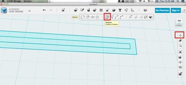 Utilizar la herramienta de Pan en la derecha de la cuadrícula de movimiento 123D app a la derecha