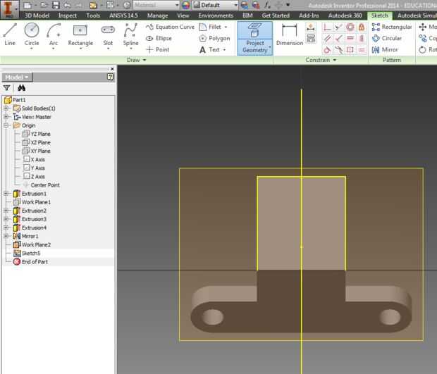 1. usando geometría proyectada, proyecto los bordes y la parte superior del objeto y el plano del bloque fue dibujada en el. Esto puede hacerse pasando por los planos de origen en la izquierda de la pantalla hasta que el avión en que del bloque fue dibujado. Haga clic en ese avión para proyectar el plano de trabajo.