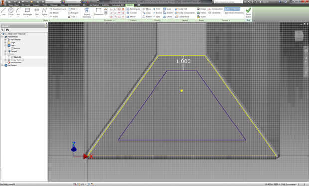 Seleccione una de las nuevas caras de la brida y un nuevo boceto 2D en esa cara del cajón. En el bosquejo crear un perfil de compensación que se establece en 1" desde el borde más externo, como se ve en la figura. Terminar el bosquejo cuando termine.