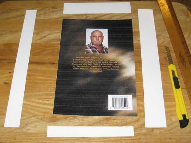 Luego cortar las fronteras asegurándose de que la parte delantera y la espalda son el mismo tamaño que el interior de libros.
