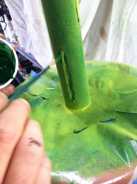 3. ' congregación' - este material viene en una botella de la coctelera (similar a las especias de cocina) y se riega en la pintura como que se está secando. Las instrucciones recomiendan utilizar adhesivo en aerosol, pero aplicándola directamente a la pintura húmeda funcionó a la perfección.