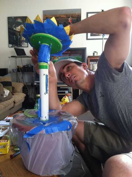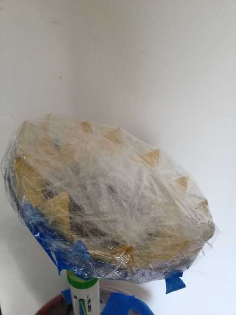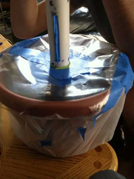 1. enmascarar - cinta adhesiva las zonas que no desea pintar. Utilizamos bolsas de plástico para cubrir las grandes áreas (el bote y la cabeza de la flor) y cinta de enmascarar para áreas más pequeñas.