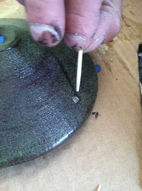 5. retoque - utilizar un pincel o un palillo de dientes para pintar en todas las áreas que te perdiste con la pintura en aerosol. Sólo rocía la pintura en una taza y solía para tocar para arriba. Recuerde que las áreas que ha retocado la multitud!