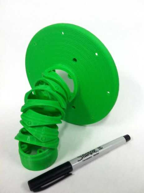 El cuello se compone de 7 enlaces idénticos. Estos enlaces están diseñados para que un extremo se forma dentro del otro y Únete con agujeros y pasadores sencillos. Todo cuello y cabeza todos aparecen a la vez, lo que significa ninguna Asamblea requerida! * Estar seguro permitir suficiente espacio libre entre el perno y el agujero para que la impresora puede colocar material de apoyo entre ellos. Si no hay suficiente espacio, las piezas se funden y no se moverán entre sí.