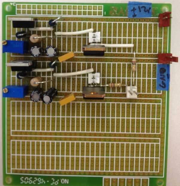 El segundo es un regulador de voltaje variable dual con los interruptores MOSFET para el control de los pétalos de alambre muscular. Este tablero sirve para dos propósitos. El regulador de voltaje variable es necesario porque tenemos dos diversos diámetros de alambre de Flexinol músculo (200 um y 250 um), que requieren 11.5V / 600mA y 12V / 1A respectivamente. Puesto que el alambre muscular tira más corriente que el Arduino puede manejar (500 mA máx.), utilizamos un MOSFET para encender cada circuito con el Arduino.