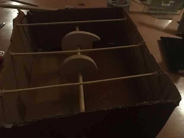 Si tu caja es demasiado débil, puede pegar pinchos cocina añadir soporte. También corte el fondo de mi caja para que sea más fácil trabajar con.