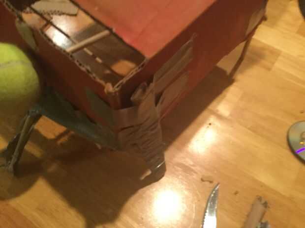 Un pequeño taco a su círculo fino del pegamento. Girar alrededor para asegurarse de que no lleguen al suelo. Si es demasiado largo y golpeó el groun, añadir zancos a su caja como se muestra en la imagen.
