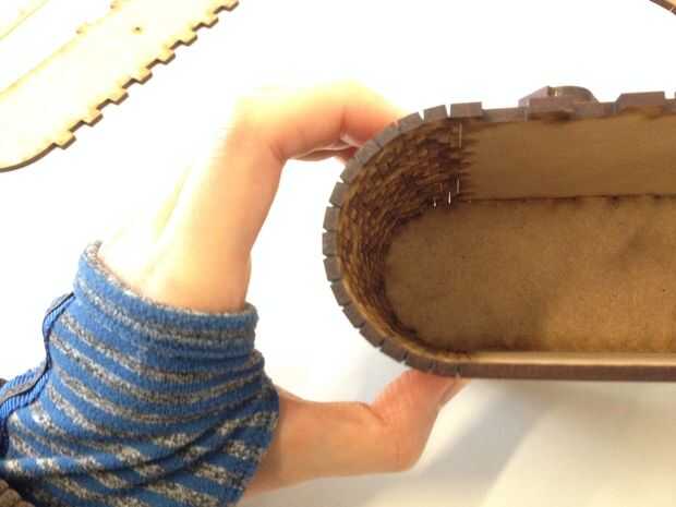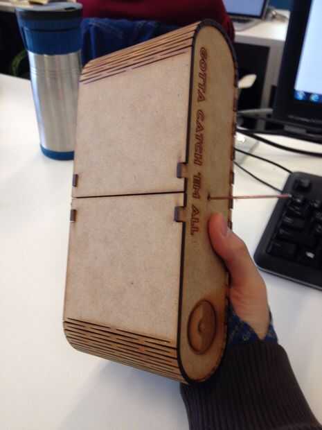 Construir parte de la caja de enrejado bisagra uniendo las muescas en el centro de la pieza más larga de caja a la parte superior de una de las piezas laterales (los con Pokéballs en ellos). Si nos fijamos en la imagen de archivo de AI arriba, los extremos de la pieza larga con la bisagra del enrejado deben ser el fondo de la caja, y el centro de la caja de enrejado de la bisagra con el agujero en forma de palillo de dientes será la parte superior de la caja. Los lados de la caja deben curva donde está la bisagra del enrejado. Mantenga un lado de la caja sueltas por ahora para que pueda ver donde están construyendo el mecanismo de la leva y pegar la varilla de la caja.