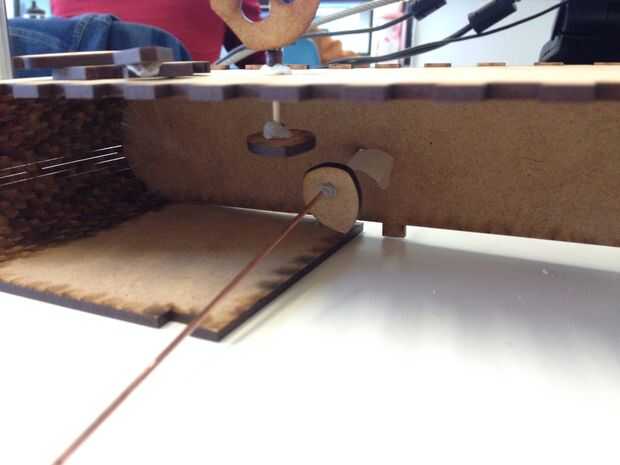 Insertar una cámara en la barra circular y usar Blu-Tack si necesario fijar en el centro de la varilla. Deslice un extremo de la varilla por el interior de la caja hacia el exterior de la pieza lateral que fija sólo en el paso 2.