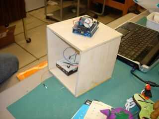 Se utilizó un procedimiento muy técnico y complicado para el servo a la base de la plataforma. Una tira de cinta doblada por la mitad, colocada sobre el servo y enroscar hacia abajo hasta la base.