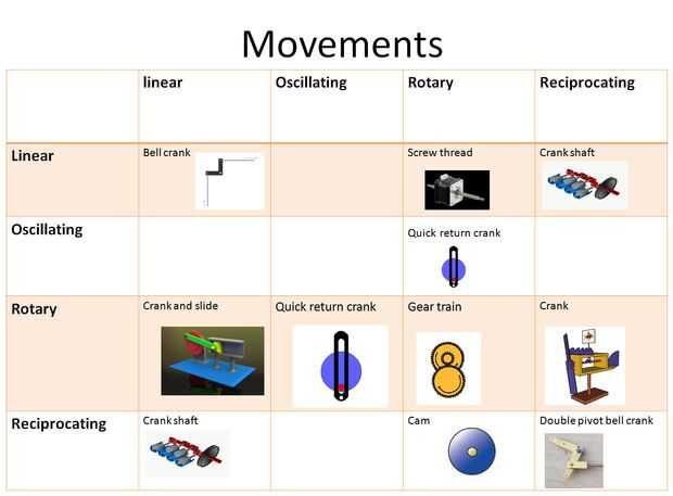 Se trata de una tabla de movimientos y maneras diferentes de convertir entre estos tipos de movimiento.