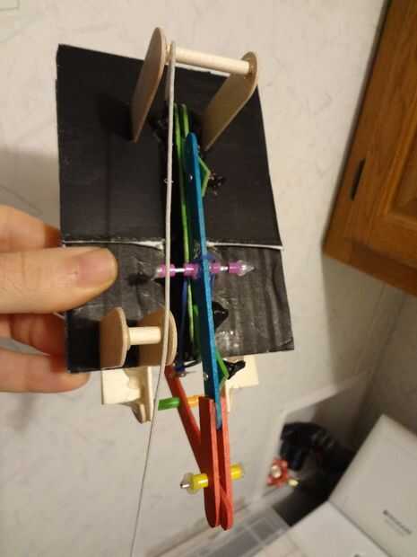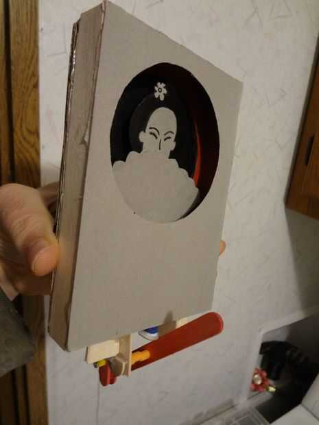 Materiales y herramientas necesarias son bastante auto explicativa al ver las fotos. Digamos que utiliza principalmente cartón y craftsticks. Comenzar haciendo una idea de a qué tema desea que así como puede empezar a trabajar en lo mecanismo de la palanca controla los distintos movimientos. Con esto tenía que tener una palanca que el níquel empujaría para comenzar el movimiento. La palanca de la parte inferior se sujeta a su ventilador que reduce el níquel se inserta. La siguiente palanca arriba empuja su cabeza hacia adelante y hacia abajo. La parte superior empuja la bola hacia fuera para el paso de dispensador. También la parte superior tiene un interruptor hace que tiene otra palanca que presiona y activa la señalización led en la parte superior de la máquina.
