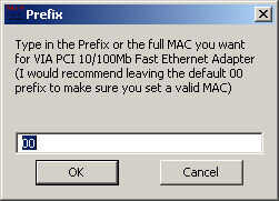 En la ventana de configuración de 5 en el programa de MadMACs le dan la opción de escribir un prefijo para el la dirección MAC al azar. Esto identifica a la marca de la MAC en el servidor DHCP, se puede encontrar una base de datos de prefijos aquí