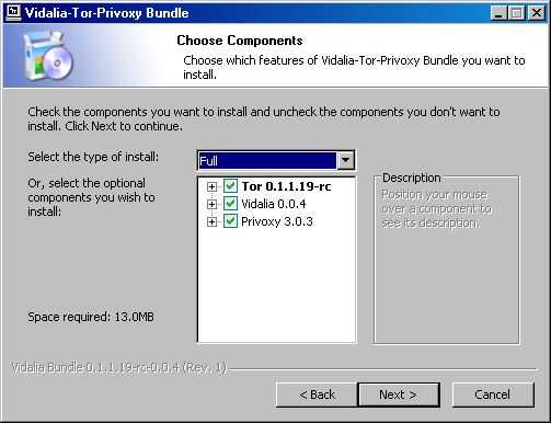 Aquí están unas imágenes del programa de instalación de Tor, no se preocupe si sus números de versión son diferentes y dejan todas las opciones de comprobar.