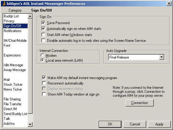 He añadido tres ejemplos de programas creo que siguen siendo algo populares, cada uno se muestran dos imágenes con comentarios. Primero dos son objetivo segundo dos MSN, en tercer lugar dos es Pidgin gaim sucesor.