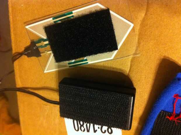Agarrar tus dos sistemas de velcro. Cortarlas en consecuencia para que se peguen en la parte posterior del Panel EL y el compartimiento de pilas Lo mismo para los dos!