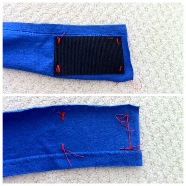 Después de cortar la manga, pero un fino suficiente tira de velcro que cerca de 1/2 y pulgadas de espacio libre en ambos lados (superior e inferior)