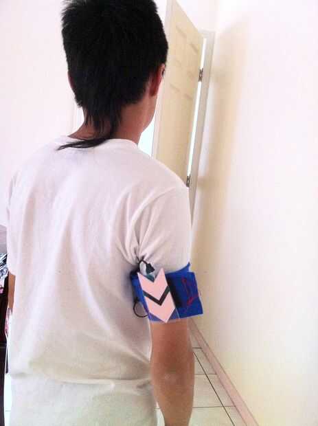 Asegúrese de que el velcro correspondiente al panel de EL es en la parte posterior de su brazo y la batería en el frente o cerca del frente.